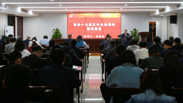 12月7日晚,市金投集團(tuán)邀請黨的十九屆全會精神市級專家宣講團(tuán)成員市政協(xié)常委、港澳臺僑委主任朱紀(jì)元為集團(tuán)和子公司全體職工作《黨的十九屆五中全會精神輔導(dǎo)報告》宣講。