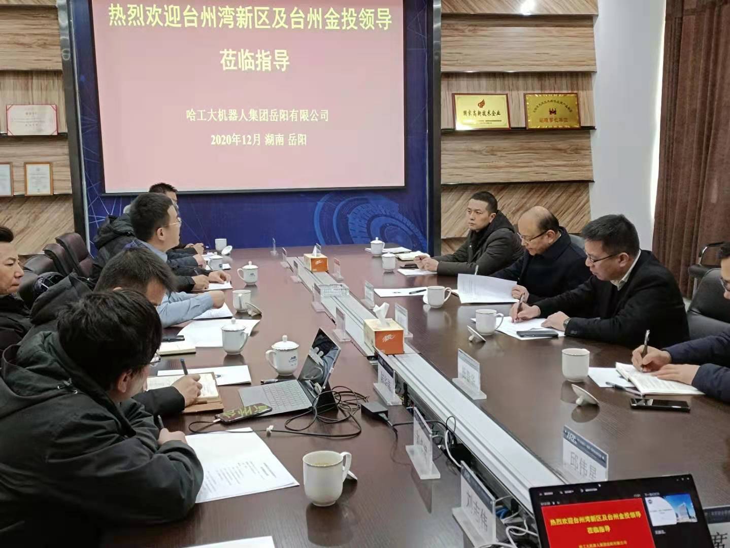 12月16日至12月17日,市金投集團黨委委員、副總經(jīng)理盛夏帶隊陪同臺州灣新區(qū)管委會相關(guān)領(lǐng)導,赴湖南省岳陽市走訪調(diào)研哈工大機器人(岳陽)軍民融合研究院(HRG)。