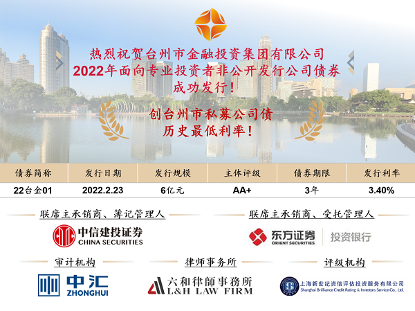 開(kāi)年之際,市金投集團(tuán)于資本市場(chǎng)內(nèi)再嘗試再出發(fā)!集團(tuán)計(jì)劃財(cái)務(wù)部積極響應(yīng)國(guó)家、省、市政策號(hào)召與集團(tuán)融資工作部署,于2月23日成功面向?qū)I(yè)投資者非公開(kāi)發(fā)行公司債券(私募公司債)6億元,創(chuàng)臺(tái)州市私募公司債歷史最低利率。
