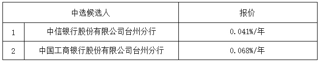 臺州市金融投資集團(tuán)有限公司中期票據(jù)和定向債務(wù)融資工具發(fā)行承銷商招標(biāo)(非政府采購)(重新招標(biāo))項(xiàng)目,經(jīng)評標(biāo)委員會評審,結(jié)果公示如下: