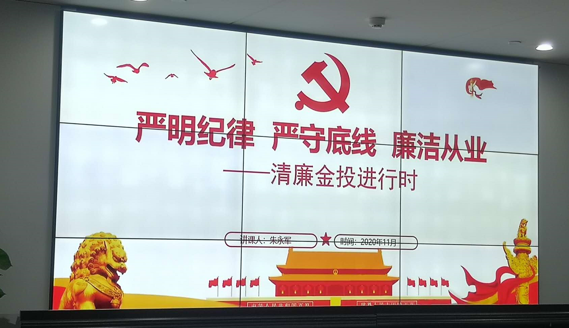 11月2日晚,集團紀委書記朱永軍以“嚴明紀律 嚴守底線 廉潔從業(yè)”為主題為集團全體干部職工講黨課。